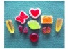 Probably best known as a gelling agent in cooking, different types and grades of gelatin are used in a wide range of food and non-food products: Common examples of foods that contain gelatin are gelatin desserts, trifles, aspic, marshmallows, and confectioneries such as Peeps, gummy bears and jelly babies. Gelatin may be used as a stabilizer, thickener, or texturizer in foods such as jams, yoghurt, cream cheese, and margarine; it is used, as well, in fat-reduced foods to simulate the mouthfeel of fat and to create volume without adding calories. Gelatin is used for the clarification of juices, such as apple juice, and of vinegar. Isinglass, from the swim bladders of fish, is still used as a fining agent for wine and beer.